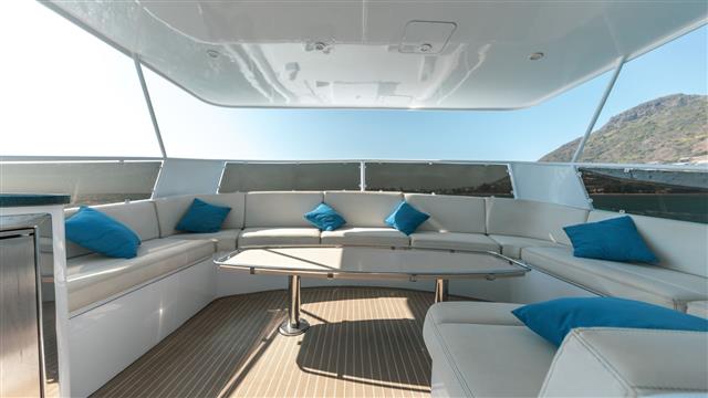 Флайбридж оборудован большой и удобной зоной отдыха, а также мини-холодильником и раковиной. Зона отдыха на флайбридже — лучшее место, чтобы посидеть, выпить и расслабиться после дня, проведенного на солнце. Все навигационные системы и элементы управления также дублированы на флайбридже.